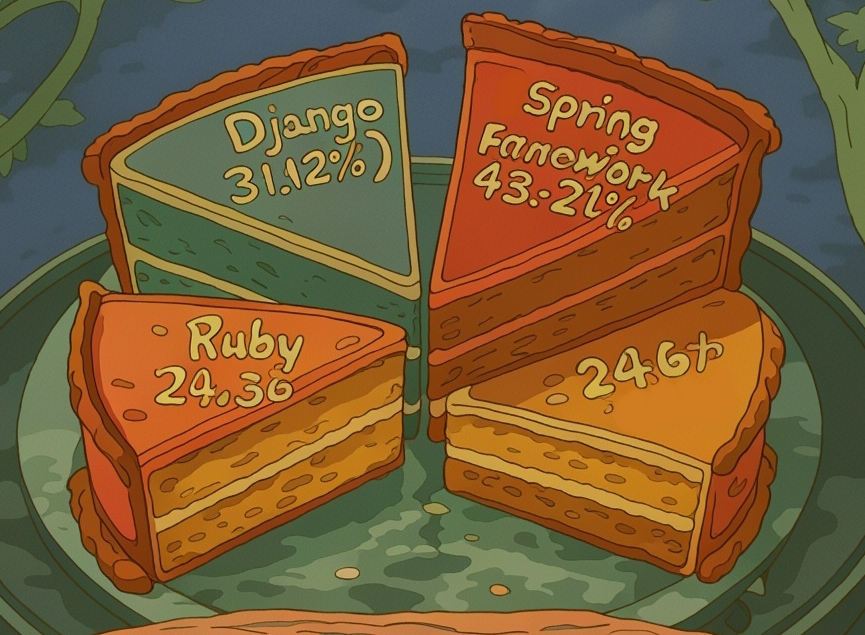 After more than 20 years of a happy marriage, Ruby on Rails holds the second-largest slice of the market share in the web framework category. With 24.48% of the market, it’s slightly behind Django (31.12%), and just ahead of the Java-based Spring Framework at 19.82%.