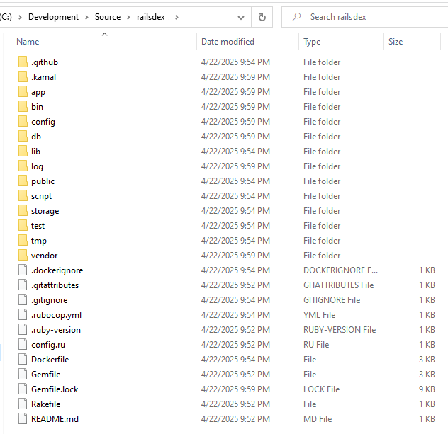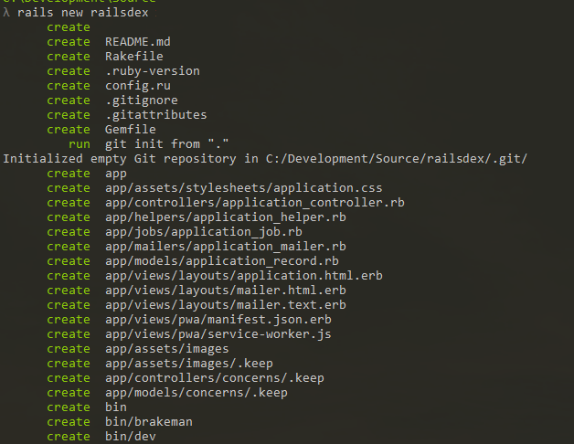 Let’s get started. Open a command prompt, navigate to the place you want to keep the codebase and type: rails new railsdex
