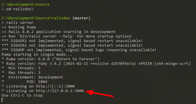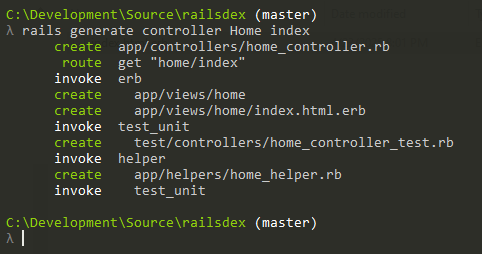 Using the same command prompt, navigate into the application directory railsdex and type: