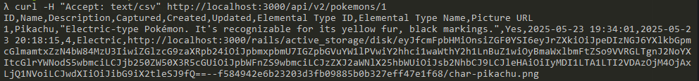 curl -H "Accept: text/csv" http://localhost:3000/api/v2/pokemons/1
