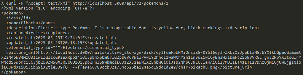 curl -H "Accept: text/xml" http://localhost:3000/api/v2/pokemons/1