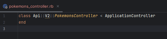 Rails has created the skeleton controller class at /app/controllers/api/v2/pokemons_controller.rb, open and edit this file.